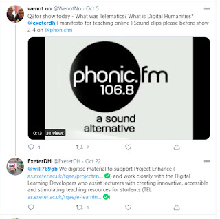 We Don't Know is a radio show, mostly music so not always time there for long comments on HE, but some connection to what turns up on Twitter or in blogs. Sometimes just a few remarks. I had thought that since Telematics there has not been much similar happening at St Lukes. But it seems the Digital Humanities lab is a new focus. Located on the main campus near the library. Scope seems to have expanded beyond texts.
